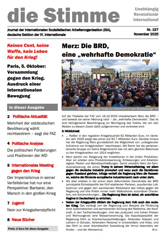 „die Stimme“ wird herausgegeben von der deutschen Sektion der IV. Internationale, der Internationalen Sozialistischen Arbeiterorganisation (ISA).